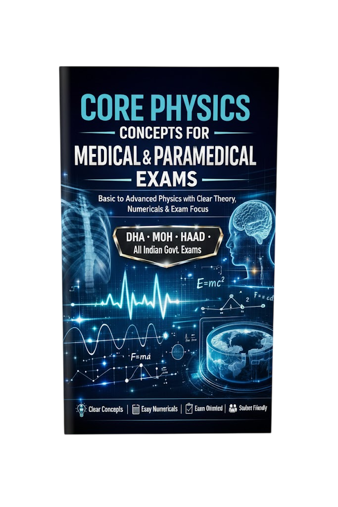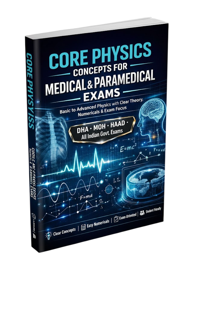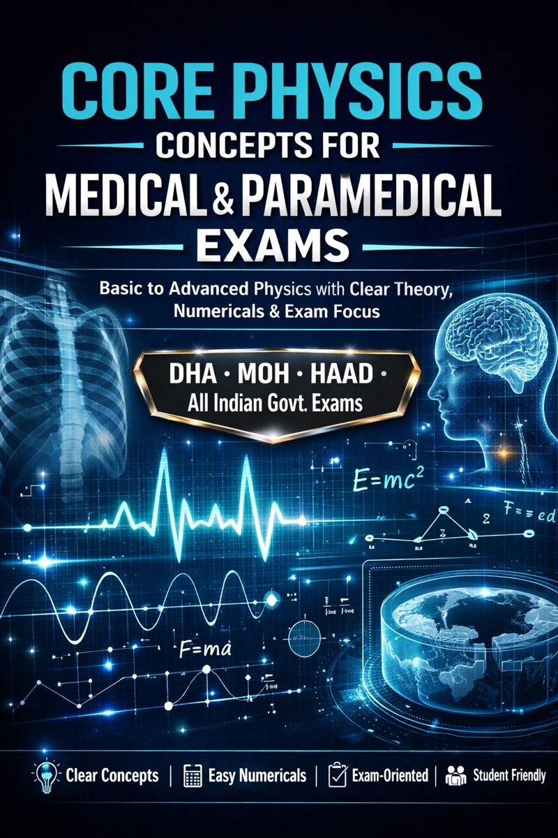 Core Physics Concepts for Medical & Paramedical Exams ek carefully designed premium e-book hai jo specially un students aur professionals ke liye banayi gayi hai jo DHA, HAAD, MOH, Prometric aur international licensing exams ki preparation kar rahe hain.