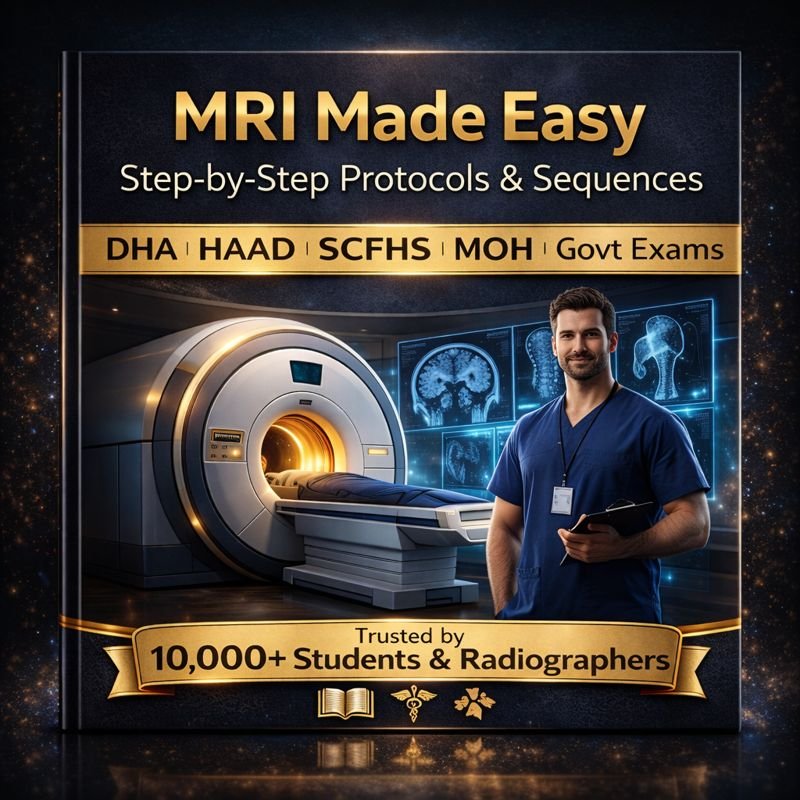 This eBook explains MRI protocols and sequences in a structured, practical, and simplified way, using short notes, tables, and bullet points—so you can revise faster and perform confidently inside the MRI room.